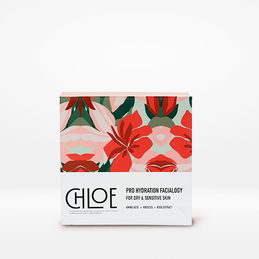 Chloe Facialogy, meticulously crafted for sensitive skin, embraces the calming power of Amino Acid, soothing Hibiscus, and gentle Rose extract, providing a nurturing and harmonious skincare experience that delicately cares for and protects your sensitive complexion.